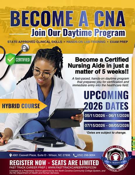The hybrid class gives students much more flexibility in their busy schedule to complete the Nurse Aide I program. Upon satisfactory completion of the NA I Training program, the graduate is eligible to take the North Carolina NNAAP exam given by NACES. An exam fee of $101 is required. Upon achieving a passing grade, the graduate will be listed as a Nurse Aide I on the NC Nurse Aide I Registry.